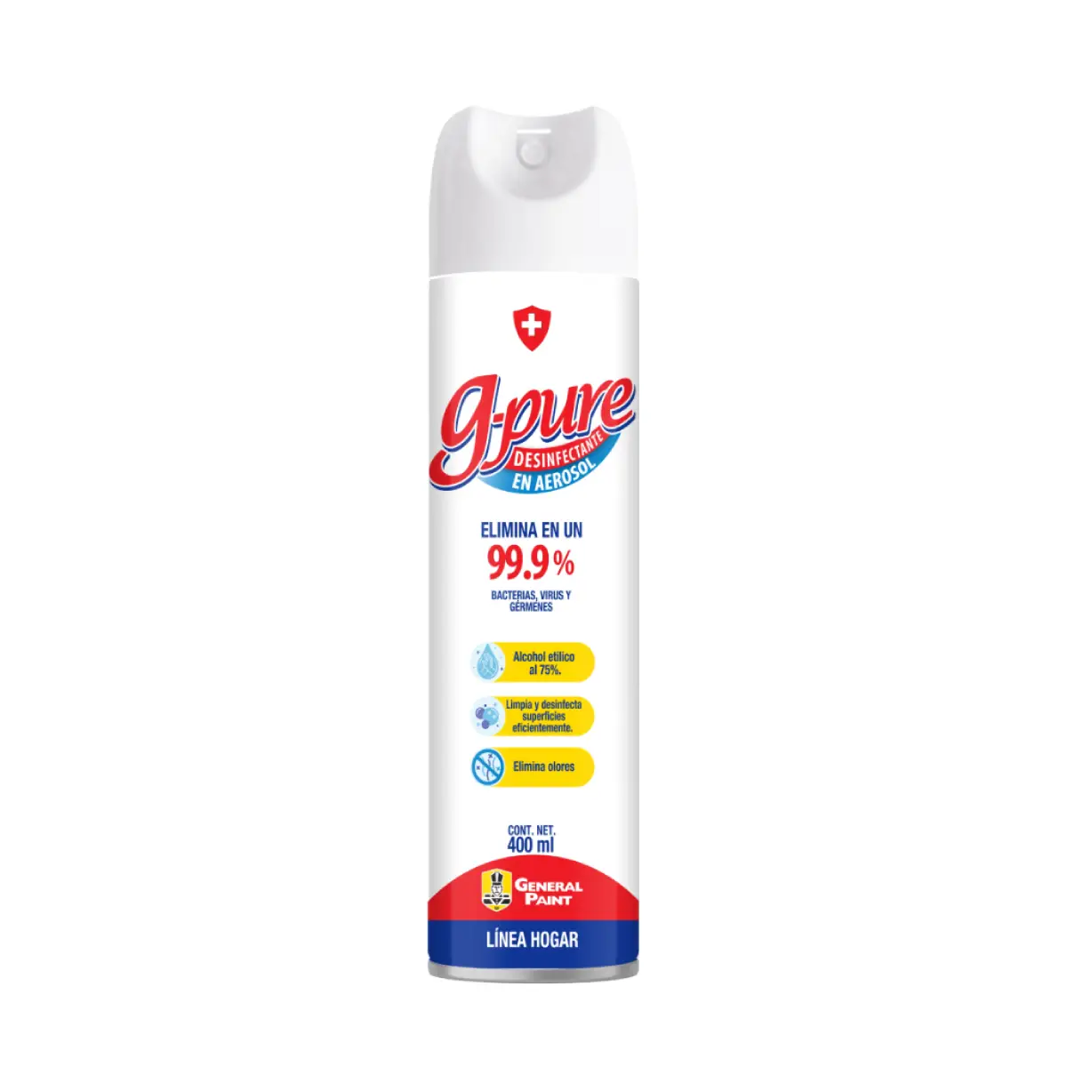 Con el desinfectante de superficies G-Pure elimina hasta en un 99.9 % baceterias, virus y gérmenes.