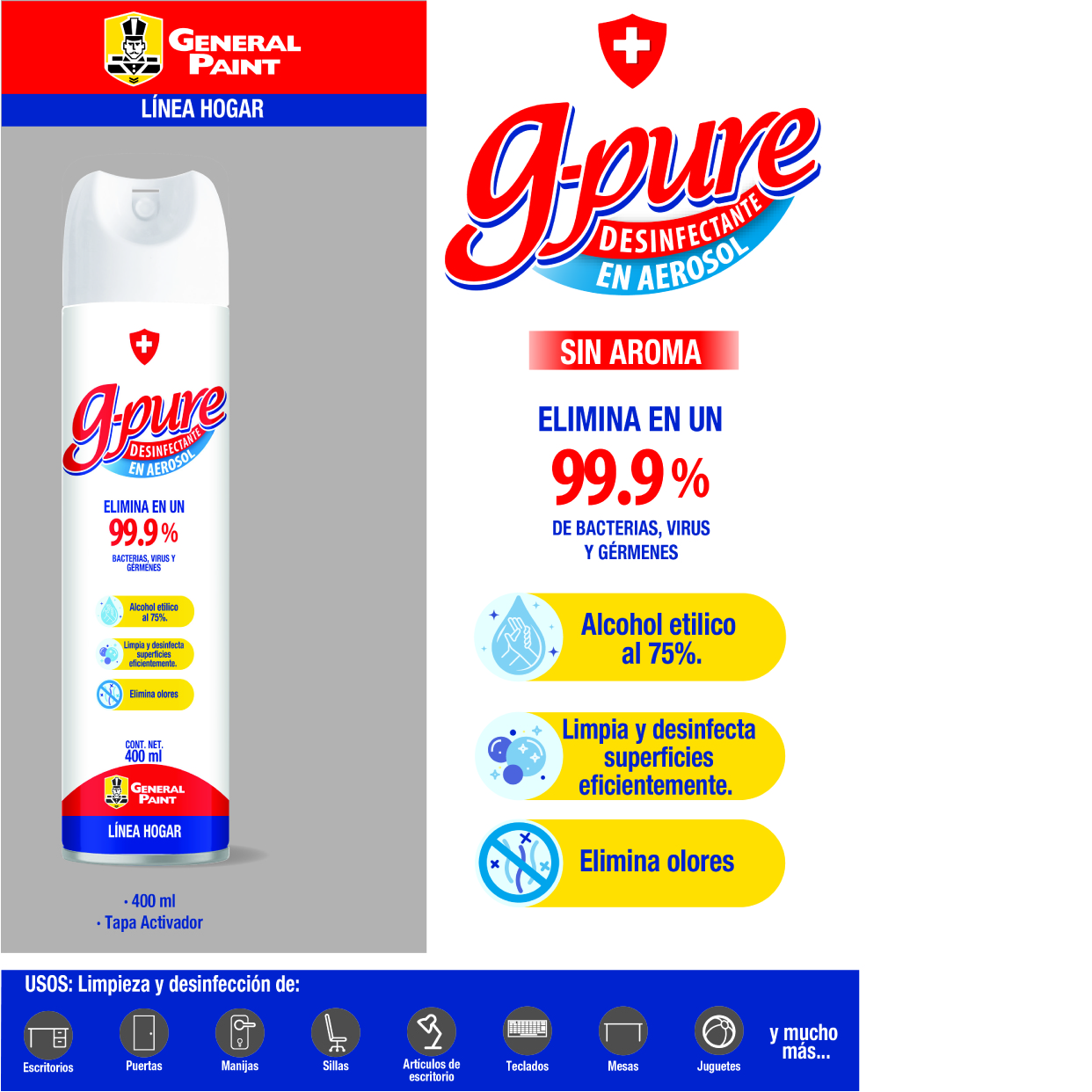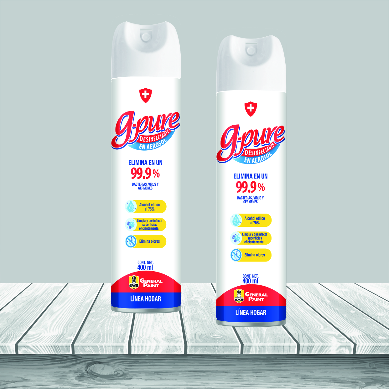 Con el desinfectante de superficies G-Pure elimina hasta en un 99.9 % baceterias, virus y gérmenes.